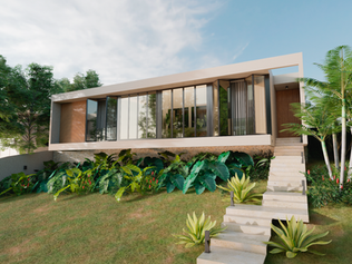 Residencia de 270m² localizada em Jambeiro. Projeto de casa térrea num terreno de aproximadamente 1080m² que possui duas fachadas frontais, voltada uma para cada rua. Uma delas, a principal, com um pequeno balanço e valorização da construção, outra secundária para o acesso mais técnico próximo a área de serviço e despensa.